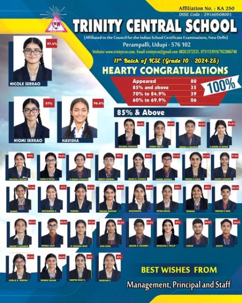 1st: KREEZMA DSOUZA - TRINITY CENTRAL SCHOOL, PERAMPALLI