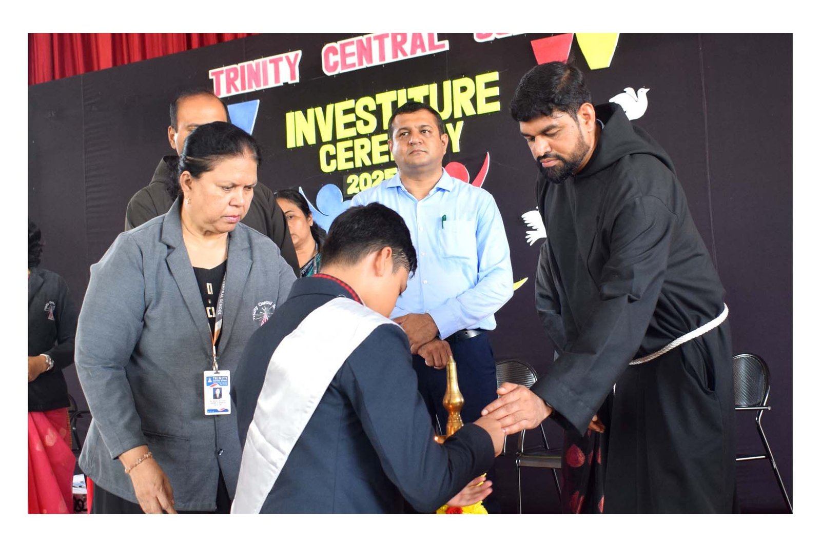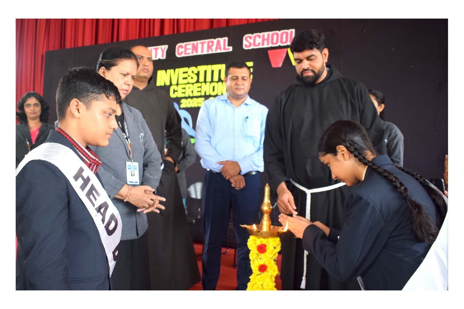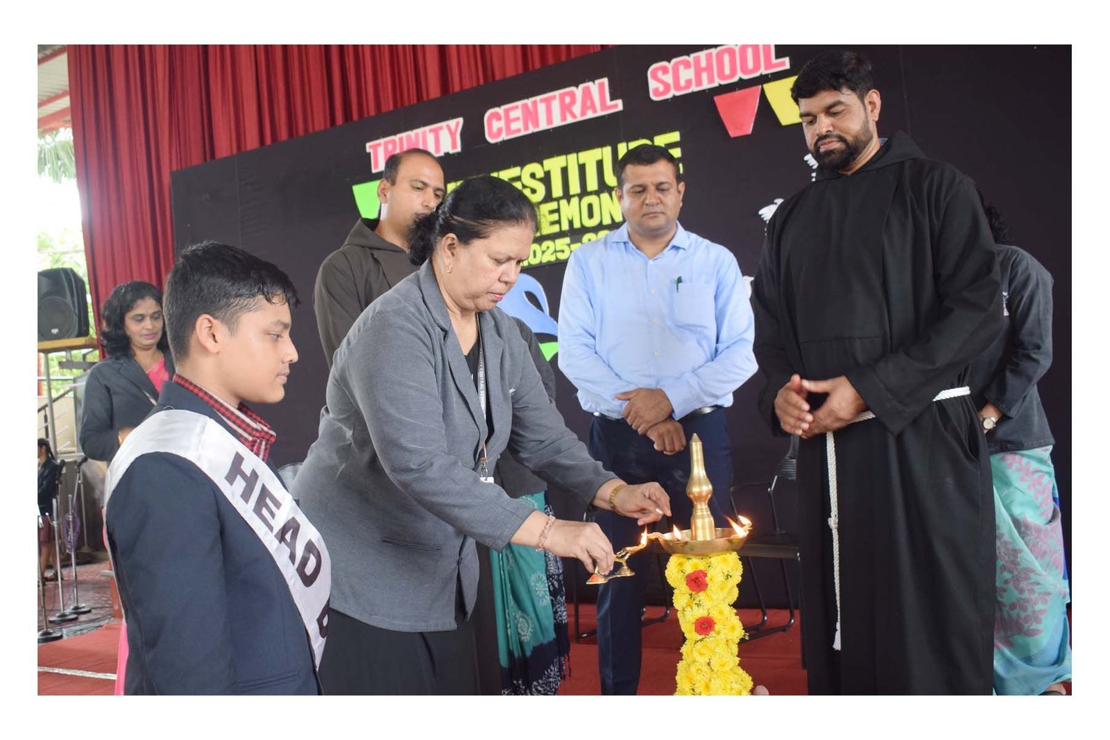 The staff and students of Trinity Central School, Perampalli bore witness to the culmination of leadership, responsibilities and new visions, with the Investiture Ceremony (Cabinet Swearing-in Ceremony) for 2025-26 on June 20. Loyal Passanha, the assistant head-boy of the previous academic year 2024-25, welcomed the distinguished chief guest of the ceremony, principal of Milagres PU College Kallianpur Richard Jeevan Moras, along with the principal Fr Dominic Sunil Lobo, vice principal and administrator Fr Amar Lobo, academic coordinator Magdalena Lewis, primary section head Dr Poornima Devadiga, pre-primary section head Renita Monteiro, section head of Middle School Shruthi D’Souza and section head of High School Archana Shetty.